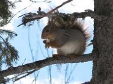 Stugbyn ligger i ett naturreservat och skulle mycket väl skulle kunna kallas ekorrbyn, det finns gott om ekorrar. Vi fångade en ekorre på bild när vi var ute och fotograferade.